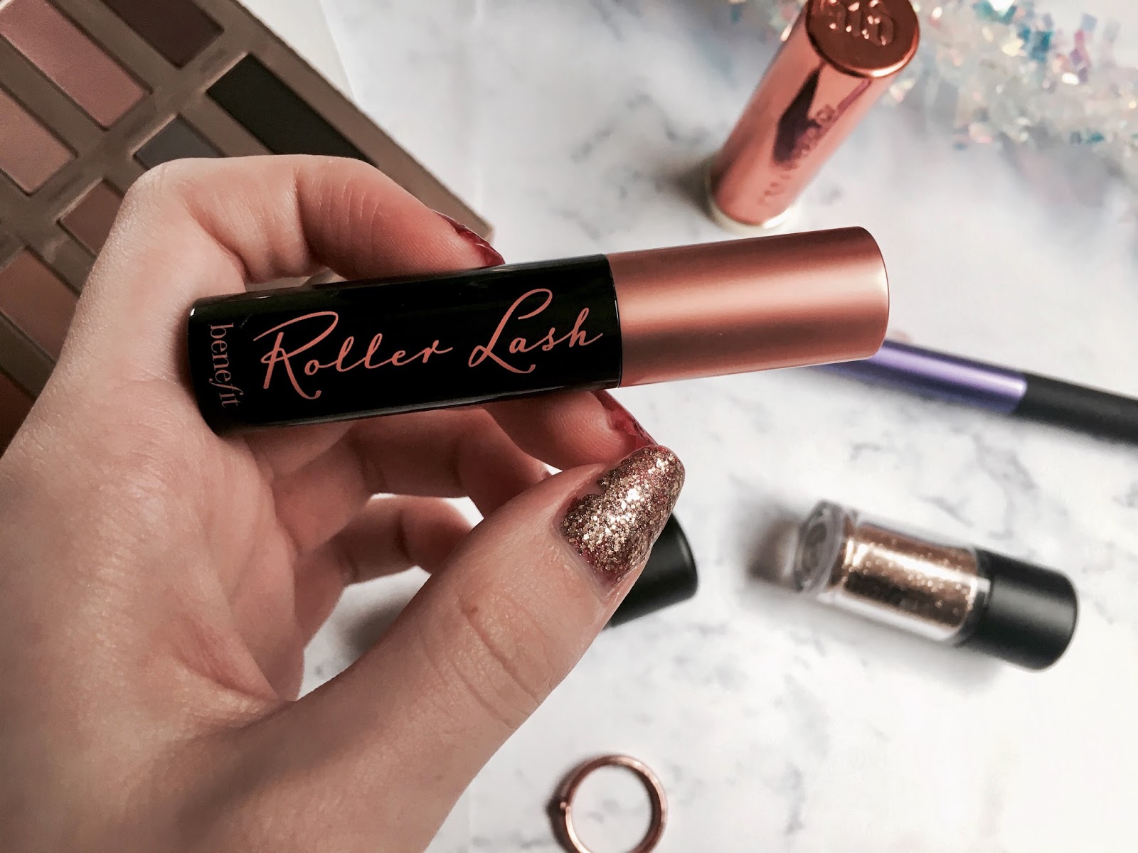 Using a bit of the NYX glitter primer to prime my lids, I’ll be adding a bit of my MAC gold glitter in the centre because it’s so pretty and festive. I’ll then be darkening up the lid, probably using some shimmer shades from the Naked 2 such as YDK and Busted, two of my favourites right now! Roller Lash from Benefit is my mascara of choice because it really lifts and curls your lashes, it’s honestly the best I’ve tried.